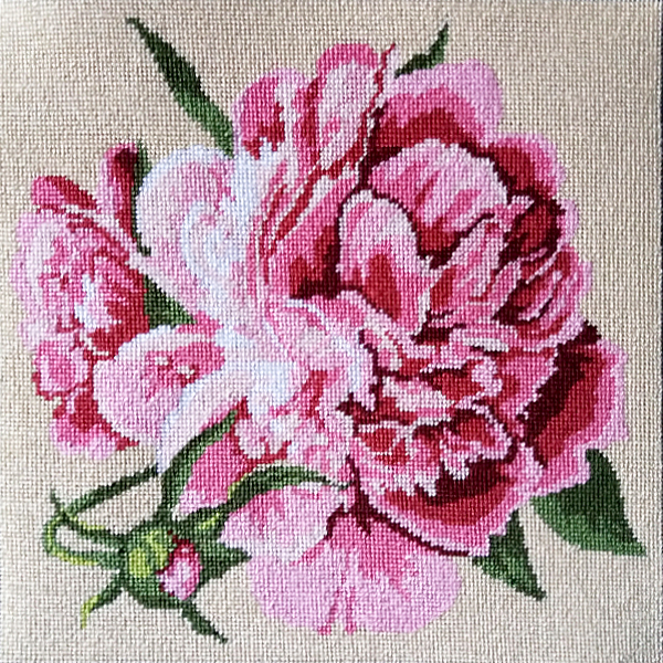 Ofer spre vanzare goblen Bujor, cusut in doua fire, pe panza de tip A, format din 10 culori, de marime 16 x 16 cm, nou.