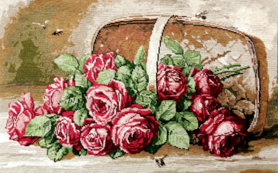Goblen cusut Cos cu trandafiri