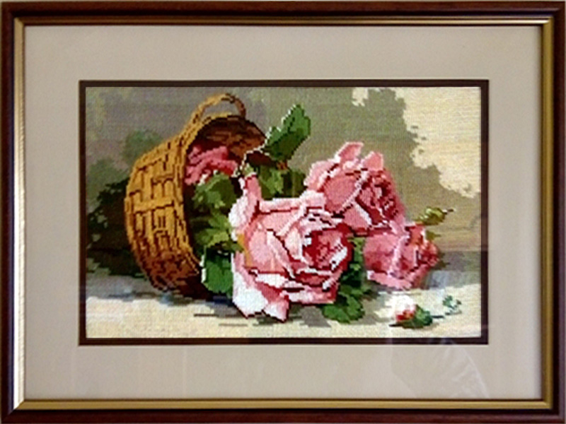 Goblen cusut Cos cu trandafiri roz