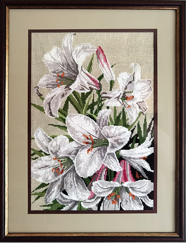 Goblen imprimat, cusut pe panza tip D, format din 13 culori, timp de lucru 3 luni.