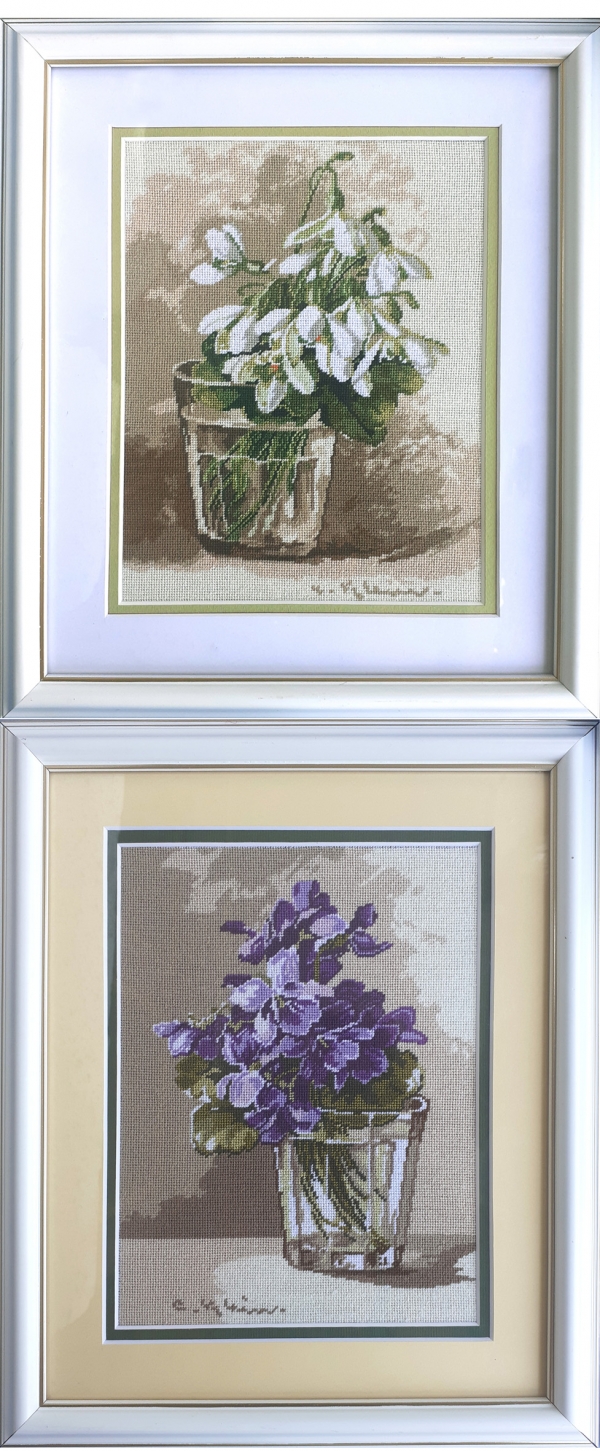 Goblen cusut Ghiocei si violete