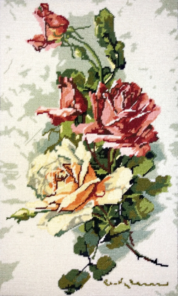 Goblen Trandafiri, imprimat, panza de tip A, format din 20 de culori, marimea 15x25 cm, nou.
