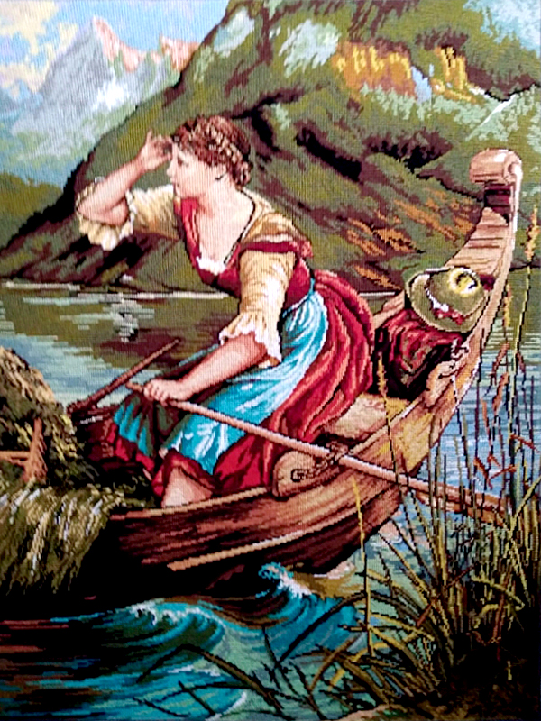 Goblen, imprimat tip A, cusut cu doua fire si 48 de culori, fara rama, cu multe elemente.