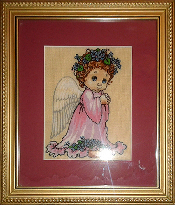Vand goblen cusut pe pinza imprimata numar culori 13 cu rama dimensiunea este21 x 24 cm