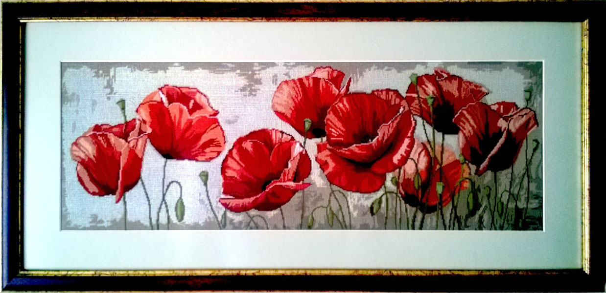 Goblen imprimat pe pânză tip A. lucrat cu 14 culori. Dimensiune cu rama 29 x 62 cm, cu sticlă mată.