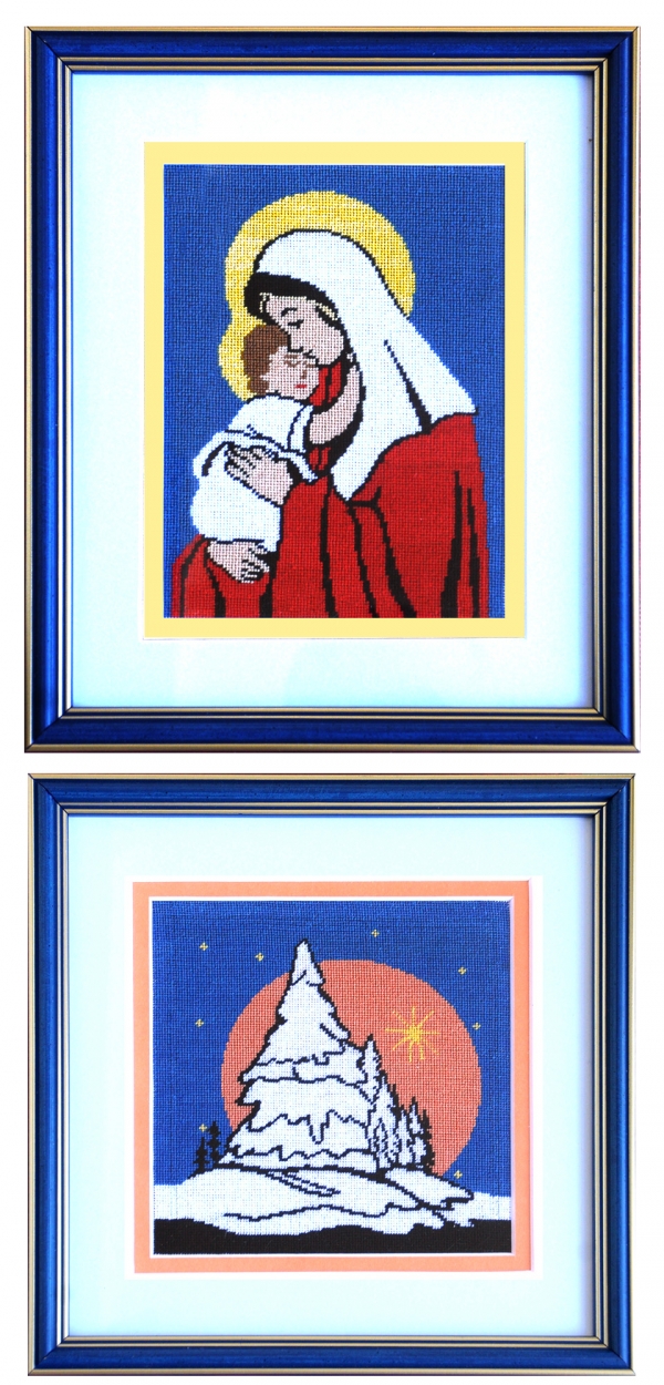 Maria cu pruncul - 12/16 neinramat, 21/26 inramat Iarna - 14/14 neinramat, 24/24 inramat Culorile sunt vii si uniforme, cum cade lumina pe geam le dezavantajeaza pe calculator. Pretul este pentru fiecare in parte, evident.