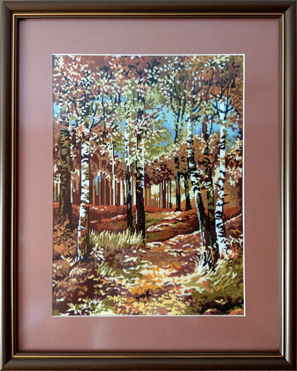 Goblen imprimat lucrat pe pânză tip A din 21 culori. Înramat cu sticlă antireflex, dimensiune cu ramă 35 x 42 cm. Lucrat în 2 luni
