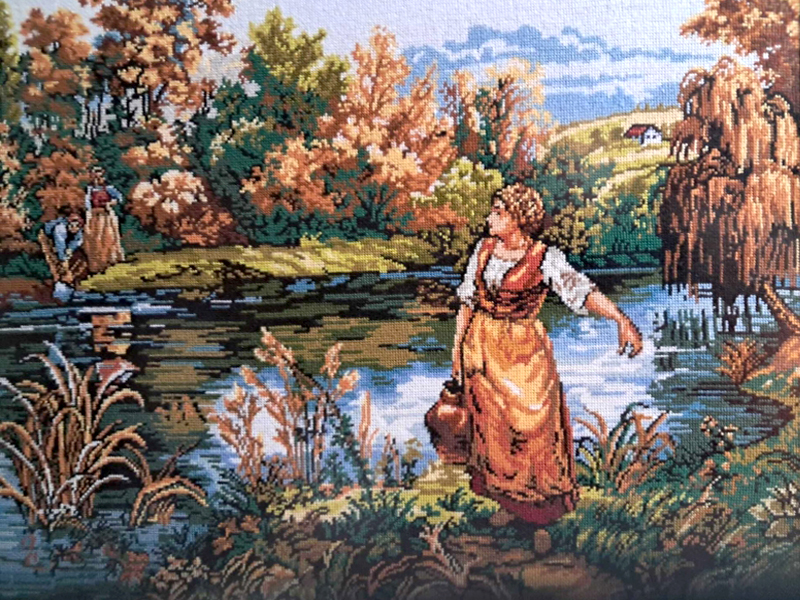 Goblen tip A, cusut cu două fire, are 25 de culori. Goblenul este fără ramă. Prețul este de 1800 lei fără ramă și 2000 lei cu ramă.