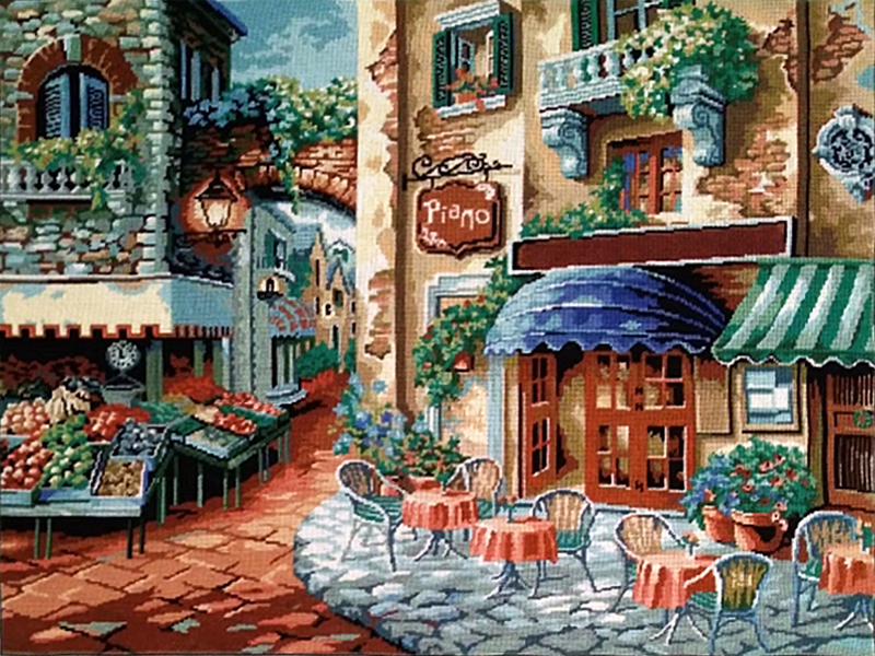 Goblen cusut Piano cafe