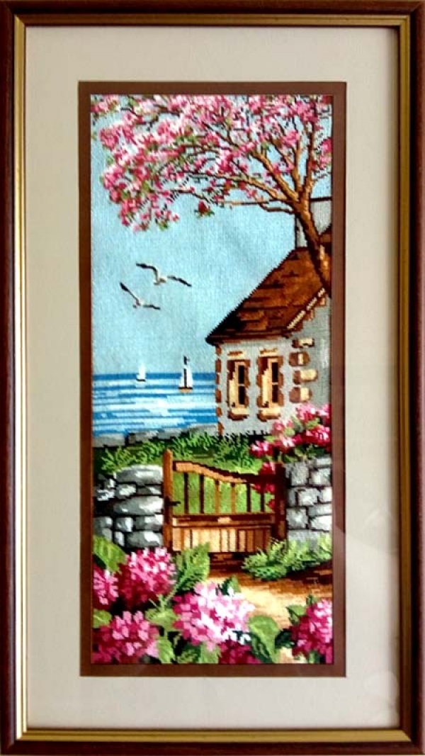 Goblen imprimat,format din 22 culori,pînza tip A,lucrat cu doua fire,timp de lucru 5 saptamîni.