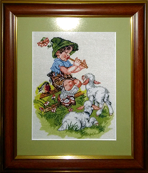 Goblen, tip A, imprimat, cusut cu 18 culori, inramat, timp de coasere 2 saptamani, dimensiuni cu rama 26/30.