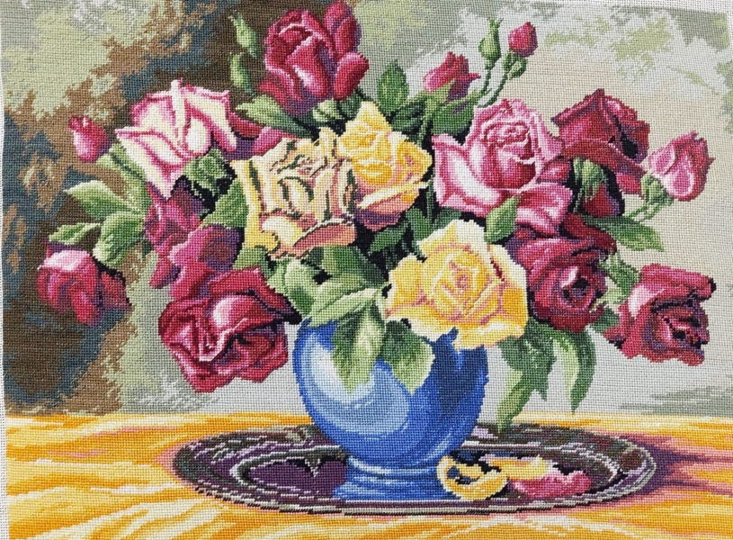 Goblen cusut Vas cu Trandafiri
